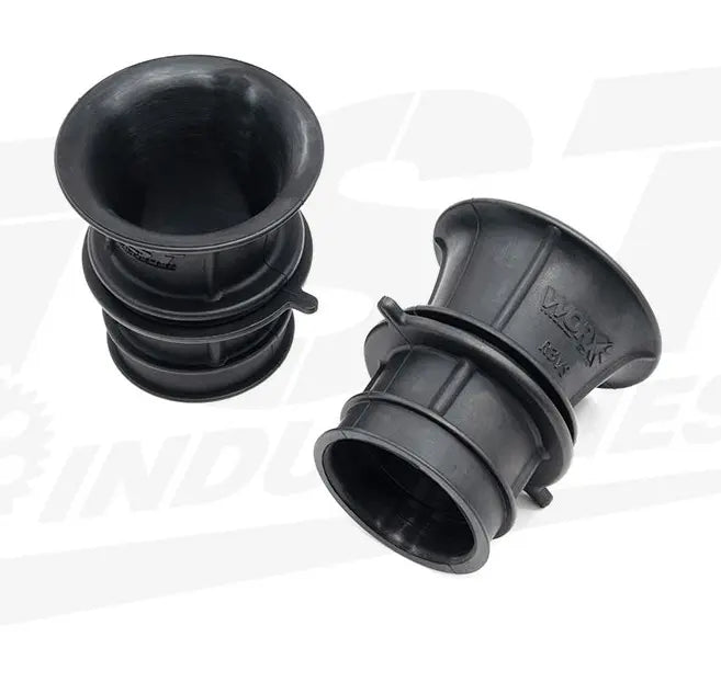 TST Industries has had a lot of Yamaha R3s over the years and collected a lot of trophies in the process. Our latest 2025 Team Yamaha Blue YZF-R3 is our first fourth-generation R3 we've been tearing into, and we've found that just like the generations before it, it can greatly benefit from some bolt-on performance upgrades. Enter our exclusive TST WORX Velocity Stacks. Through an extensive research and testing process, we determined the most effective shapes for overall power increase using the natural resonant frequencies of the R3 and MT-03 intake to develop the greatest volumetric efficiency, resulting in a 3% peak power gain and up to 8% in the top-end before the rev limiter on a properly tuned engine when compared to the same bike using OEM velocity stacks. That's enough power to help you pull away from the pack and land your race boots on the podium. No modification or special tools are required for installation, ensuring that this bolt-on upgrade can be removed and your ride returned to stock trim if needed. Our exclusive WORX Velocity Stacks are injection-molded rubber specifically chosen to withstand the harshest demands of your Yamaha race bike.