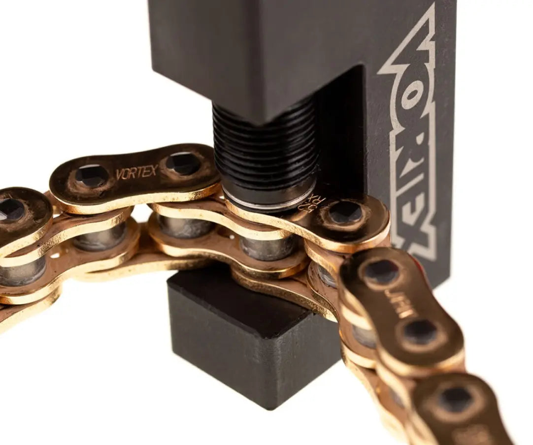 This tool is compatible with a wide range of chain brands and is particularly well-suited for use with Vortex’s Tri-Glide chains. Trusted by both race teams and serious riders, the Vortex Chain Tool eliminates the need to handle multiple tools—it allows you to break, fit, and rivet chains all with one convenient device.