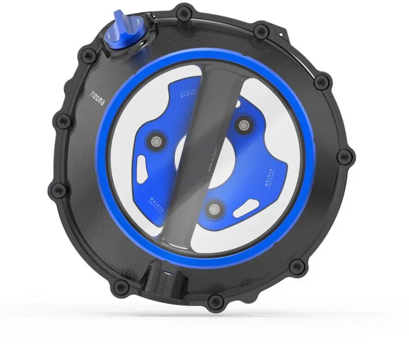 The Clutch Vent System, composed by lightweight aluminum pressure plate and pressure ring, is specifically designed for the maximum optimization of the clutch oil circulation inside the cover. In addition, for minimizing moving masses and increasing mechanical strength, Rizoma selected titanium screws for inner parts fastening.