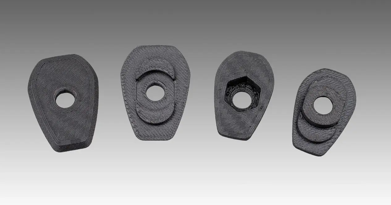 Our custom mounting plates are 3D printed with Onyx, nylon mixed with non-continuous carbon fiber offers high strength, excellent UV/heat resistance, and paintable. Not compatible with stock turn signals.